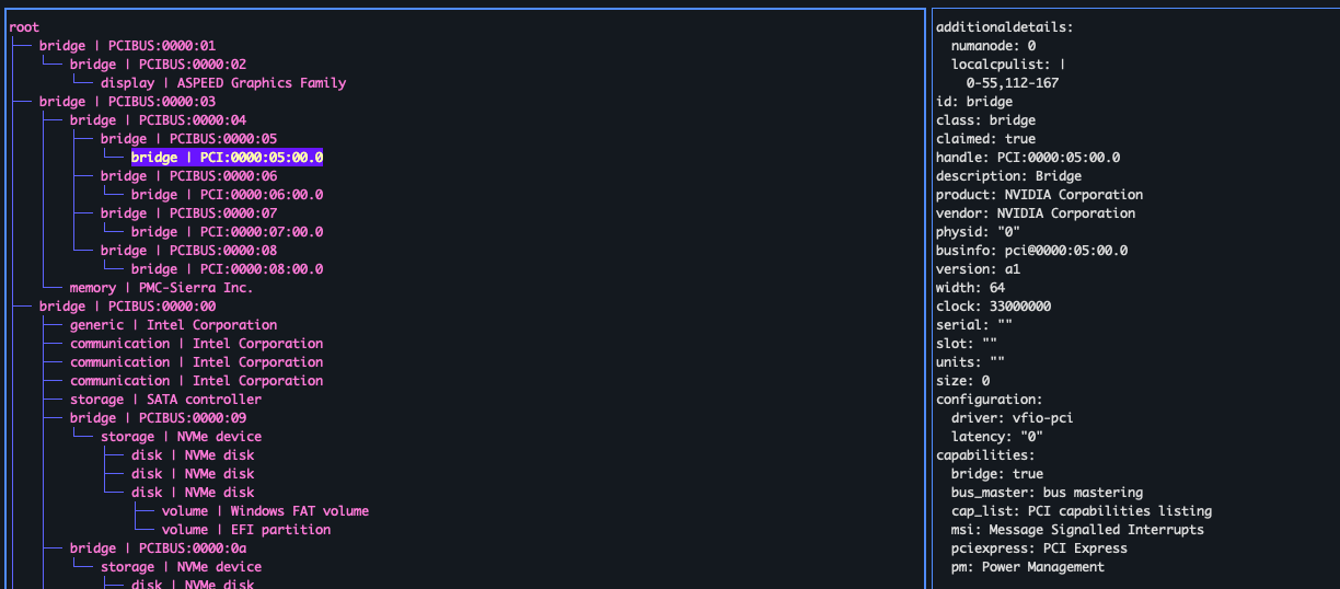 Recall our discussion on Kernel Mode Drivers: the host operating system itself cannot use vulnerability-prone KMDs. This means that NVIDIA drivers, which speak directly to the GPUs over PCIe, cannot be installed on the host. The guest Virtual Machine must be the one to host the Nvidia KMDs. This complicates our k8s install quite substantially because it means we cannot use the niceties of the NVIDIA GPU Operator that do various useful things like announcing GPUs to Kubernetes, managing firmware versions, publishing DCGM metrics, establishing RDMA transactions etc. This means that without custom work, Kubernetes will be completely blind to the presence of these GPUs.3